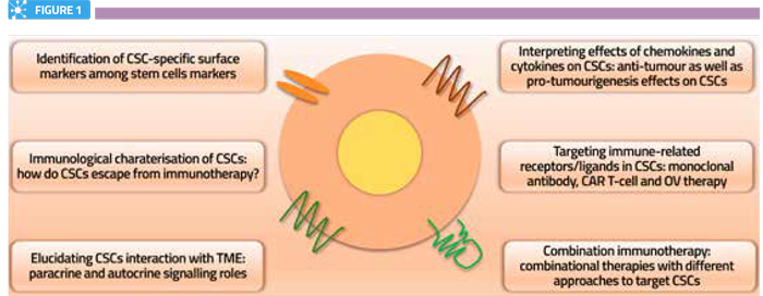 Một trong những hướng đi hứa hẹn nhất trong việc điều trị ung thư là việc nhắm vào chính các tế bào gốc ung thư (CSC). Những tế bào này có khả năng tự đổi mới và kháng lại hầu hết các phương pháp điều trị ung thư thông thường. Các liệu pháp miễn dịch hiện nay đang dần tập trung vào việc phát triển các phương pháp điều trị nhắm vào CSC, như là: